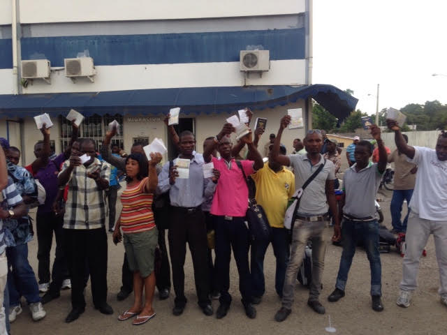 Los extranjeros varados en Dajabón se reunieron en el lugar y, mostrando sus pasaportes visados y permisos para ingresar a territorio dominicano, protestaron por la acción.