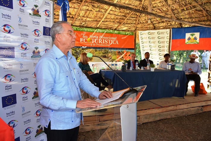 La actividad, que se llevó a cabo en el marco de la Sexta Feria Binacional Ecoturística y de Producción, estuvo encabezada, además del Ordenador Nacional dominicano, por su homologo haitiano, Charles Jean-Jacques, así como los embajadores Alberto Navarro y Vincent Degert, Jefes de la delegación de la Unión Europea en República Dominicana y Haití, respetivamente.