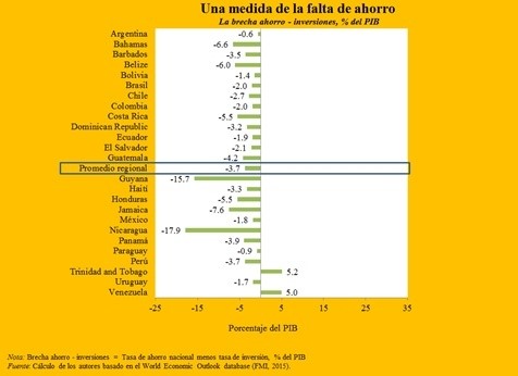 La tasa de ahorro nacional en América Latina y el Caribe fue de tan sólo el 17,5 por ciento del PIB entre 1980 y 2014, muy por debajo del 33,7 por ciento registrado en las economías emergentes en Asia y el 22,8 por ciento correspondiente a economías avanzadas. Solo África sub-sahariana registró ahorros inferiores, con un 13,8 por ciento.
