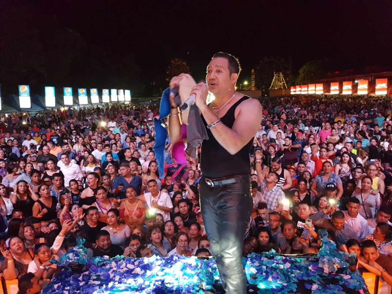 Desde sus pasados éxitos hasta sus más recientes “La Mega Estrella de la Bachata” ofreció un repertorio que sintonizó desde el principio de su actuación con las diferentes etnias hondureñas que se dieron cita en la Zona Militar, lugar escogido para el montaje del concierto.