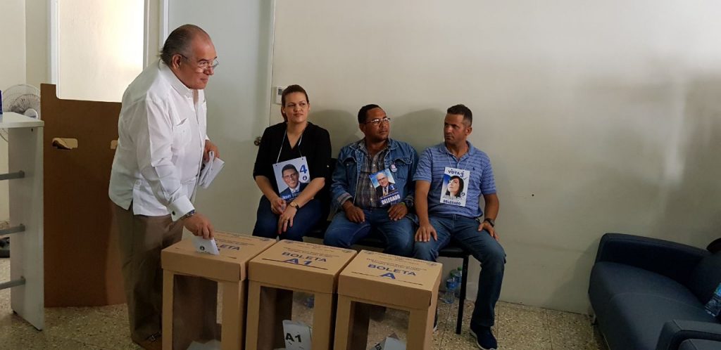 ”Eso estaba previsto”, dijo Mejía al responder una pregunta periodística cuando llegó con su esposa Rosa Gómez a la sede central de la organización donde ejerció el derecho al voto.