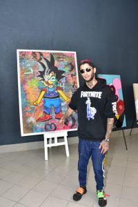En las instalaciones del Showroom de Autozama en Santo Domingo, se exhibe el vehículo Mercedes AMG, así como también obras y prendas de vestir del joven artista Mister George, del cual los amantes del arte podrán disfrutar.