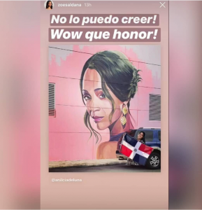 Zoe Saldaña reacciona feliz tras conocer que su rostro se encuentra en mural de Santiago wow qué honor dijo la actriz