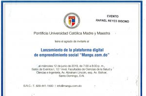 Las Autoridades de la Pontificia Universidad Católica Madre y Maestra, les Invita HOY de 7-8:00PM al Cóctel de Presentación de la Plataforma Digital de Emprendimiento Social "Manu.com.do"