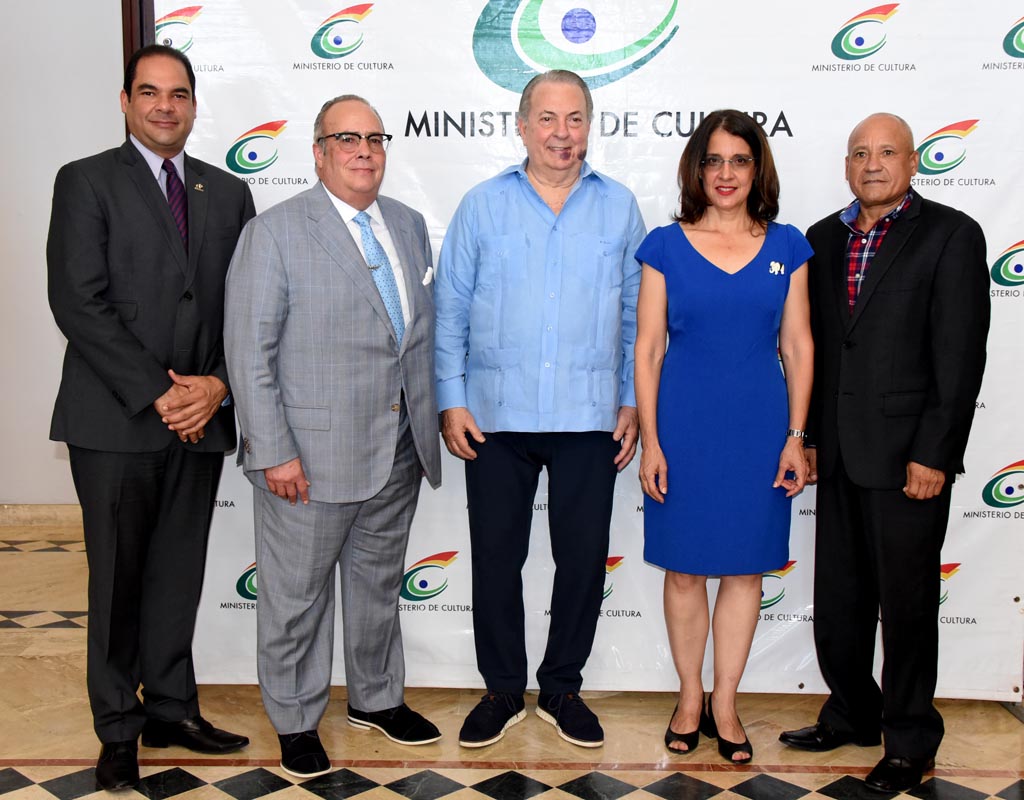 De izquierda a derecha Jesús Antonio Contreras Genao, Alcalde del Municipio de Monte Plata; Charles Mariotti, senador de la provincia de Monte Plata; Eduardo Selman, ministro de Cultura; Ruth Herrera, directora de la Feria del Libro y Nicio Rosario, gobernador provincial de Monte Plata.
