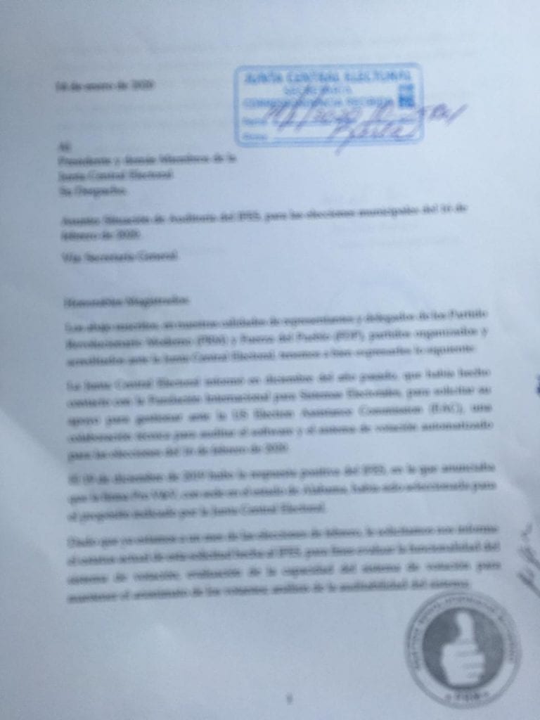 “Dado que ya estamos a un mes de las elecciones de febrero, le solicitamos nos informe el estatus actual de esta solicitud hecha al IFES, para fines evaluar la funcionalidad del sistema de votación; evaluación de la capacidad del sistema de votación para mantener el anonimato de los votantes; análisis de la auditabilidad del sistema; evaluación de las características de seguridad del sistema de votación; análisis del código fuente y los procedimientos almacenados; y evaluación de la capacidad del sistema de votación para capturar con precisión la intención del votante”, explican los delegados.