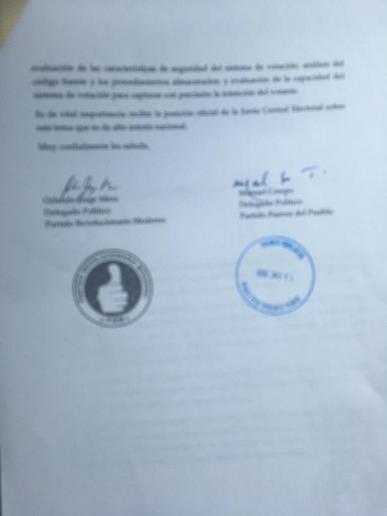Los delegados políticos del PRM y la FP señalan que con esta petición tienen el interés de revestir de transparencia los procesos electorales, determinantes para el fortalecimiento del sistema democrático y la paz de la República Dominicana.
