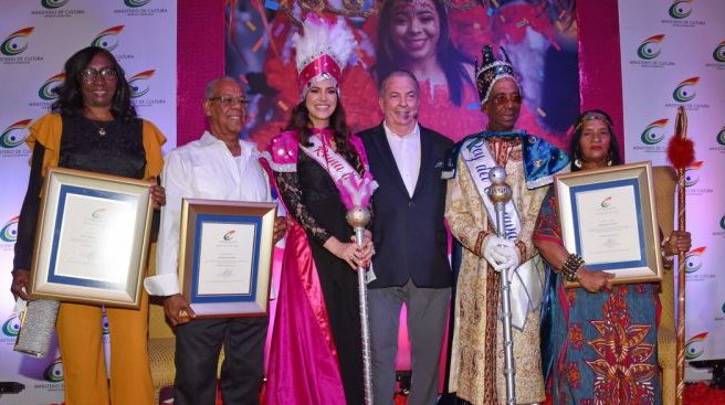 Santo Domingo. – Durante un acto encabezado por el ministro de Cultura, Eduardo Selman, los ministerios de Cultura y de Turismo coronaron a los Reyes del Desfile Nacional de Carnaval 2020, la destacada comunicadora Pamela Sued y el reconocido carnavalero Luis Roberto Torres (Chachón).