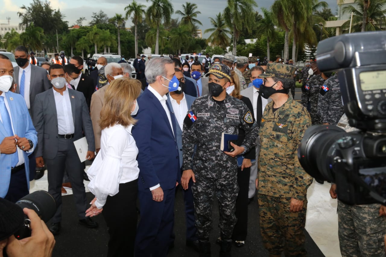 El presidente Luis Abinader encabezó el relanzamiento del Plan de Seguridad Ciudadana contra el COVID-19, en que resaltó que históricamente las fuerzas militares y policiales de la República Dominicana han cumplido con su deber fundamental de asumir la primera línea de acción cuando la Patria ha necesitado de ellos, como es la situación sanitaria actual.