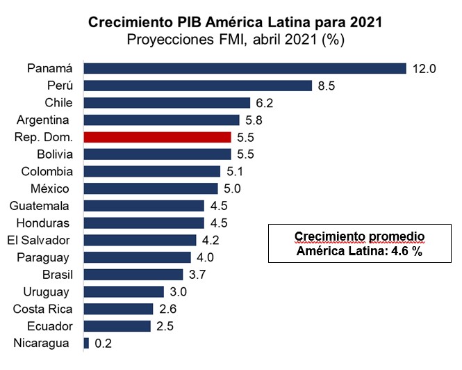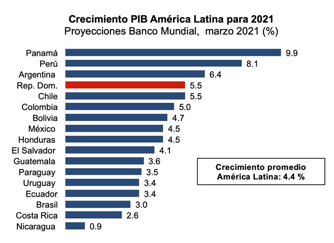 El Banco Central de la República Dominicana (BCRD), con el objetivo de mantener debidamente informados a los agentes económicos, grupos empresariales y la sociedad en general, presenta las proyecciones de crecimiento económico para el año 2021 de República Dominicana y el resto de países de América Latina, publicadas recientemente por el Fondo Monetario Internacional (FMI) y el Banco Mundial.