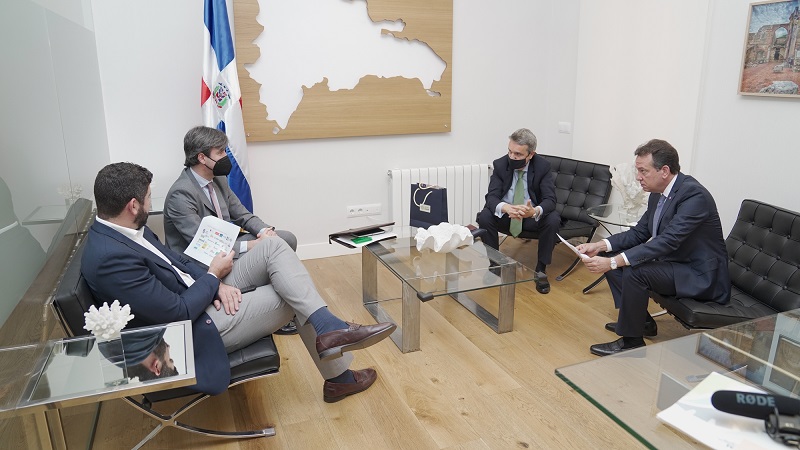 El encuentro se realizó este jueves en la Embajada de la República Dominicana en España, como parte de la agenda de trabajo que agota en esa nación el ministro Bisonó, junto al viceministro de Zonas Francas y Regímenes Especiales, Carlos Guillermo Flaquer, como parte de las acciones de seguimiento a la visita del presidente Luis Abinader el pasado mes de abril.
