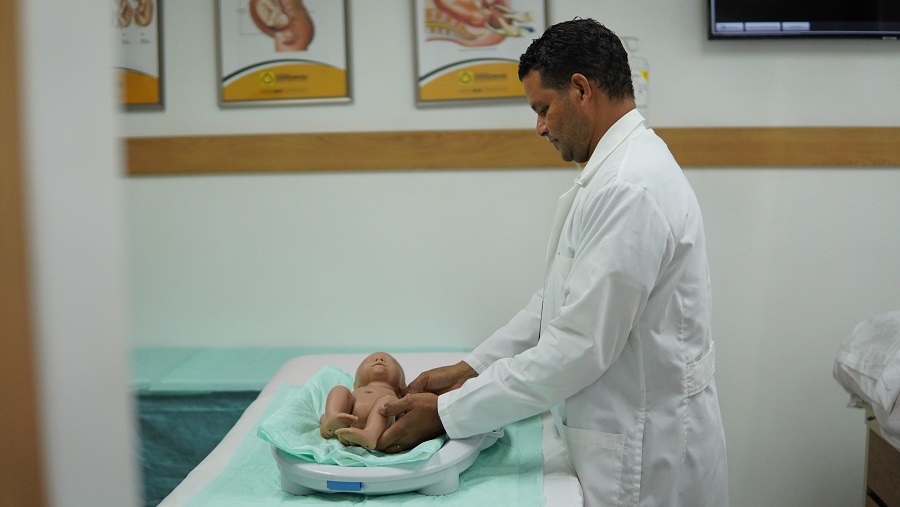 Entre los elementos de simulación para prácticas que posee el hospital se encuentran un bebé recién nacido de alta fidelidad, un simulador materno fetal que representa el más avanzado a nivel mundial compuesto por una mujer embarazada.