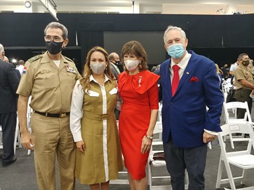 El teniente general ERD, Carlos Luciano Díaz Morfa, estuvo acompañado de su esposa, la presidenta de la Asociación de Oficiales de las Fuerzas Armadas, ADEOFA, Wendy Santos de Díaz, el coronel ERD, Gil y el suboficial FAD, Julio Payan Aquino.