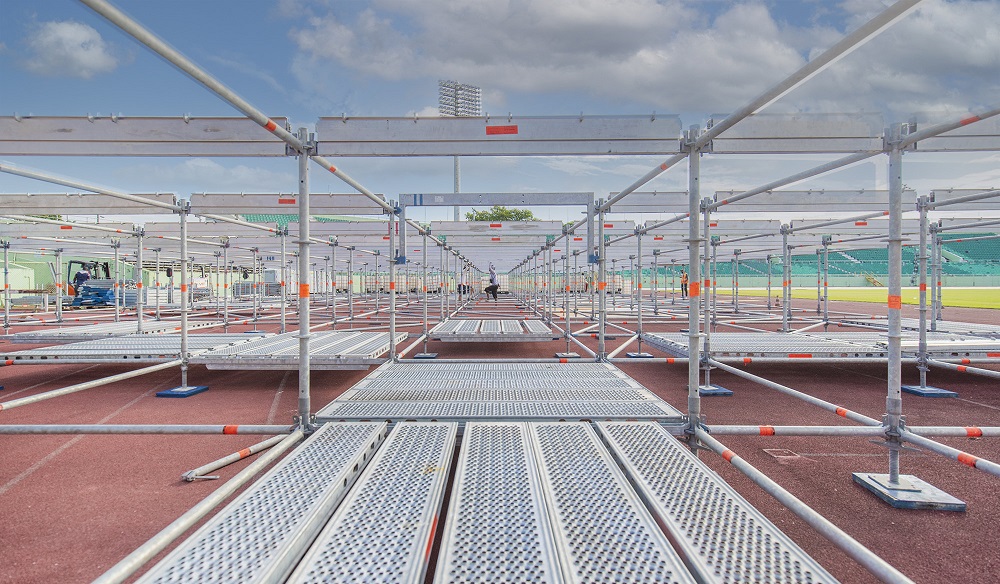 El montaje inició hace unos días y un equipo de profesionales trabaja arduamente para armar la que podría ser la tarima más imponente que se haya puesto en el Olímpico.