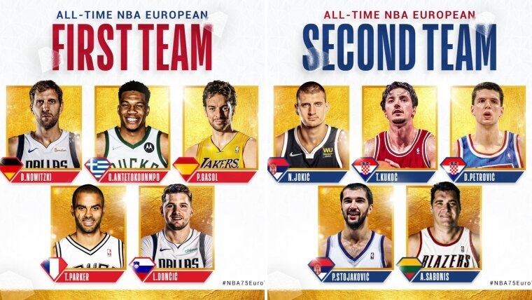 Los resultados de la categoría forman parte del NBA 75 Euro Vote, una campaña para celebrar la histórica temporada del 75º aniversario de la liga con los aficionados en Europa y conmemorar las contribuciones de los jugadores europeos a lo largo de los 75 años de historia de la liga norteamericana.