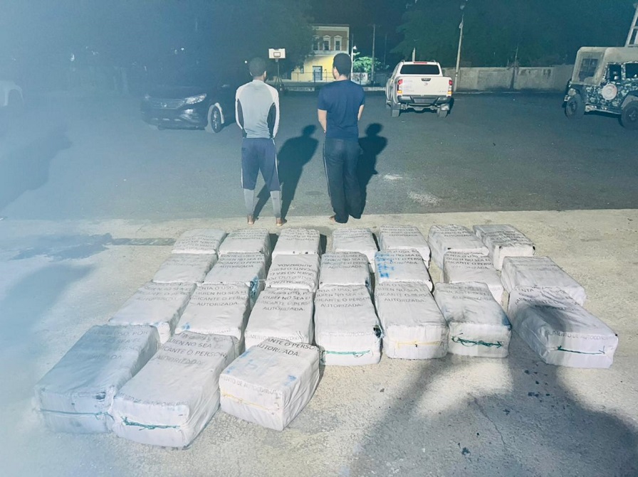 De inmediato, se activaron las unidades navales y aéreas, que iniciaron un amplio operativo de persecución por aire, mar y tierra, que duró varias horas, logrando interceptar una embarcación de unos 27 pies de eslora, donde arrestaron a dos hombres e incautaron 24 sacos conteniendo la cantidad de 700 bloques.