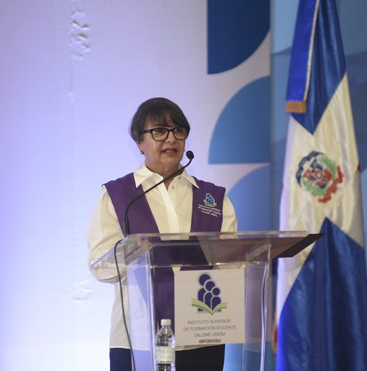 En sus palabras de apertura, la Rectora de ISFODOSU, Dra. Nurys del Carmen González, felicitó a los nuevos egresados que tienen la responsabilidad de reivindicar la loable profesión del magisterio, con sus prácticas y su accionar.