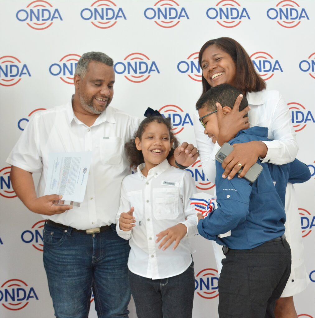 Durante el acto, celebrado en la sede de la ONDA, el menor Snyder Josué Zorrilla Castillo, recibió la certificación del registro del libro de las manos de Eduar Ramos, encargado de Atención al Usuario.