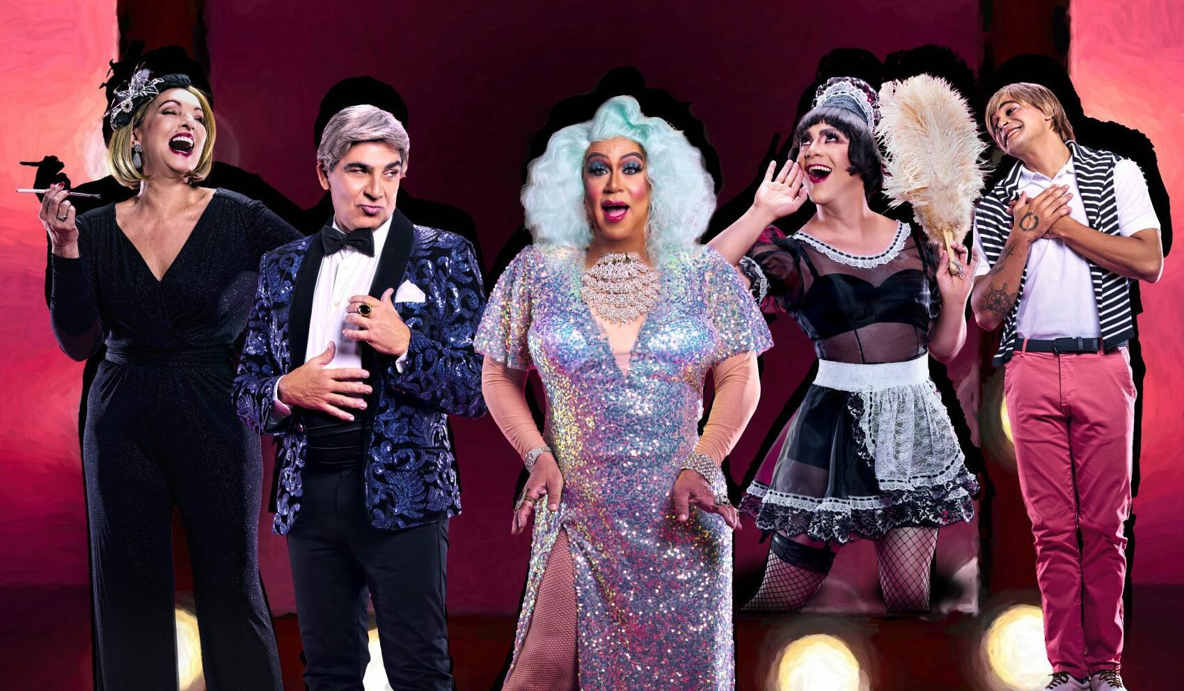Completan el extraordinario elenco más cuarenta artistas en escena, danza, música y un gran colorido en la comedia más exitosa de Broadway, con 11 nominaciones a los Tony Awards, con tres Drama Desk Adward, basada en la popular obra teatral francesa “LA CAGE AUX FOLLES” escrita por Jean Poiret en 1973.