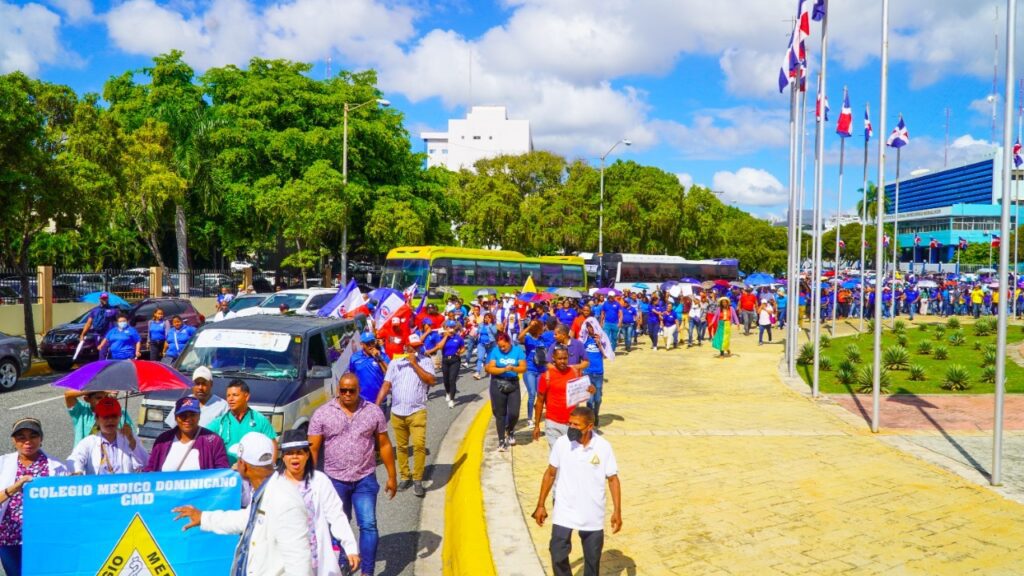 La marcha estuvo encabezada por Senen Caba, presidente del Colegio Médico Dominicano; respaldada por Miguel Surun Hernández, presidente del Colegio de Abogados; la Asociación Dominicana de Profesores (ADP), el diputado Pedro Botello y representantes de otros gremios profesionales y técnicos.