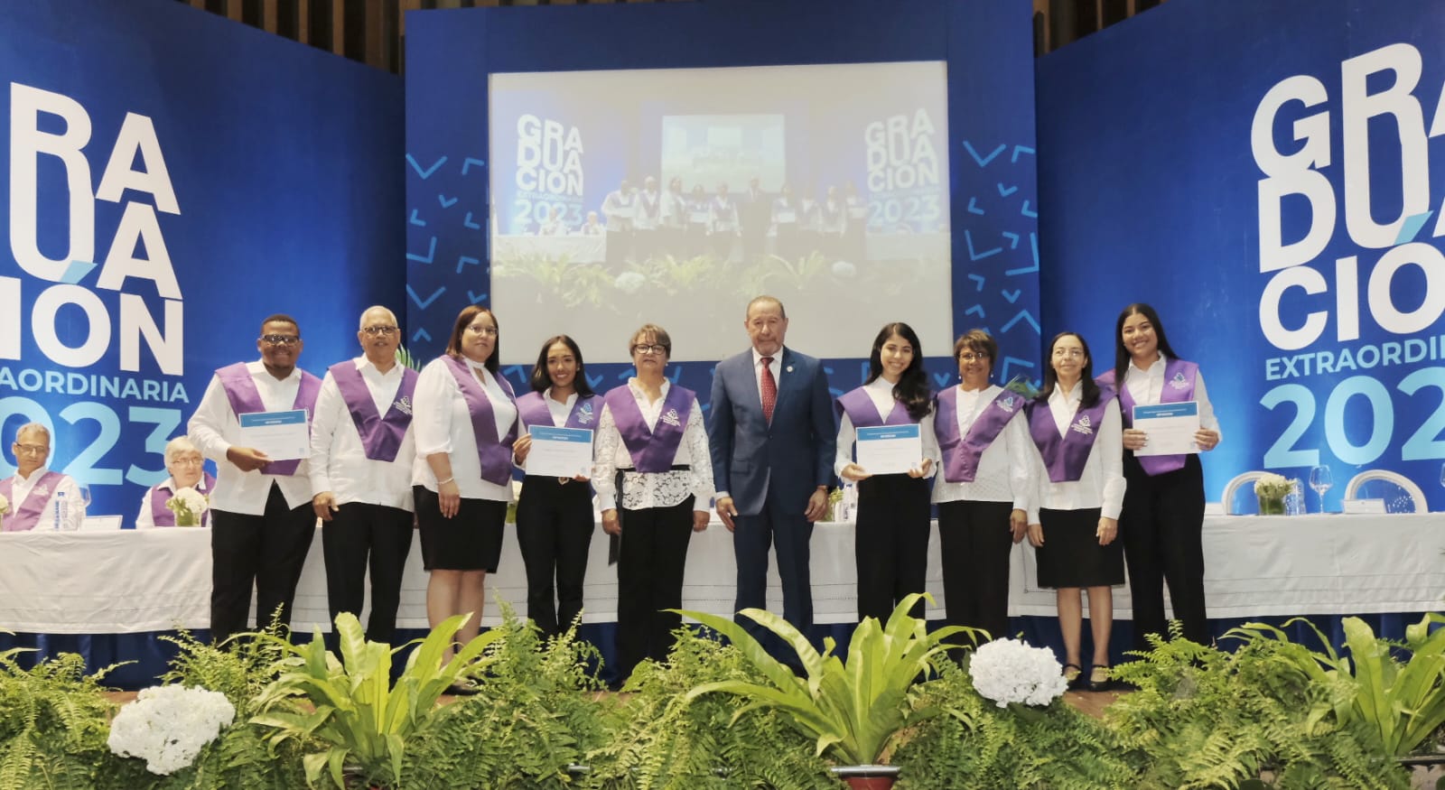 También se titulan en esta investidura extraordinaria egresados de los programas postgrado Magister en Lengua y Literatura, Especialidad en Educación Nivel Inicial y en Educación Ambiental.