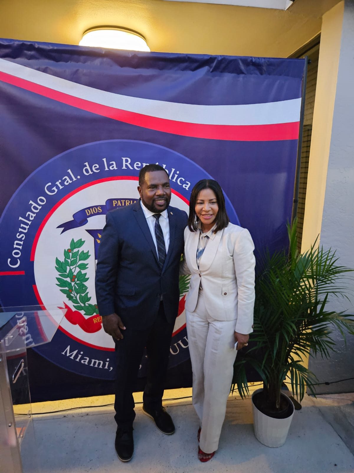 Durante el discurso, Geanilda Vásquez, acompañada de parte de su cuerpo consular de Miami, donde estaban presentes el director del INDEX, Richard Montilla y representantes de SeNaSa como Tomás Candeller, entre otros, visiblemente emocionada puntualizó con alegría, su satisfacción al cumplir este requerimiento de los dominicanos que viven en el Condado de Broward, acercando el Consulado más hacia la diáspora.