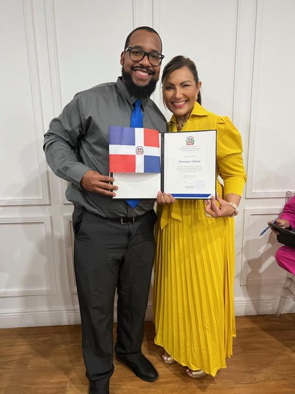 Miami, Florida. – El reconocido artista gráfico y de animación, creador de juegos y contenidos, uno de los más relevantes dominicanos que triunfa en el mundo del Cómic en Estados Unidos, conocido por su nombre artístico como Xtremee_Ghost, cuyo nombre de pila es Eleazar Soriano, fue designado como “Dominicano Destacado en el Exterior”, recibiendo un hermoso pergamino que así lo acredita por el Consulado General de la República Dominicana.