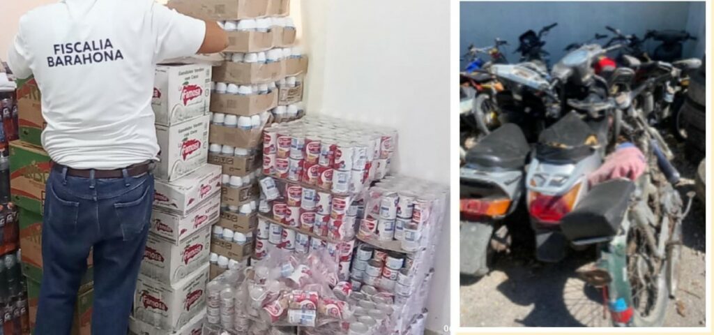 Santo Domingo, 7 de noviembre de 2023.-En una acción conjunta entre el Departamento de Investigación Criminal (DICRIM) de la Dirección Regional Sur y el Ministerio Público, se llevó a cabo un allanamiento en el barrio Enriquillo de Barahona, culminando con la detención de tres individuos, la recuperación de un camión y varias motocicletas, así como el decomiso de productos comestibles de origen cuestionable.