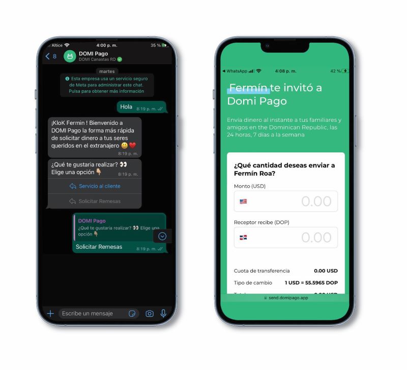 La plataforma permite a los receptores en la República Dominicana solicitar fondos a sus familiares en el extranjero a través de un chatbot seguro en WhatsApp, con atención al cliente disponible todos los días de la semana.