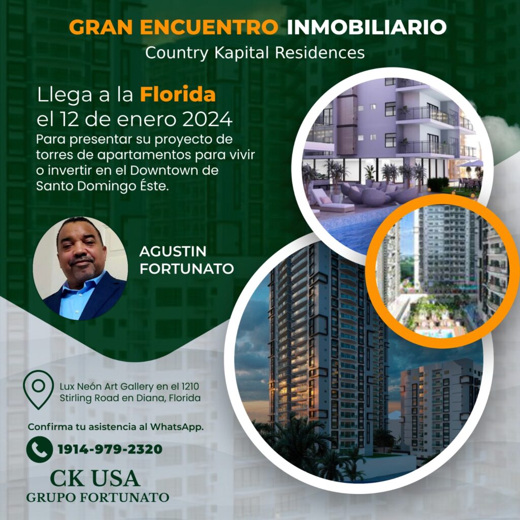 Broward, Florida. – El Grupo Fortunato, reconocida familia de intelectuales en la República Dominicana, trae a la Florida, empezando el 2024 con "buen pie", la más extraordinaria oportunidad de inversión inmobiliaria para los dominicanos e hispanos interesados en comprar apartamentos de lujo en el país, a solo 25 minutos del Aeropuerto Internacional de las Américas y que tendrán nombres temáticos de grandes metrópolis de diferentes partes del mundo, insertándose con ello en el campo de esta industria importante para el desarrollo económico del país.