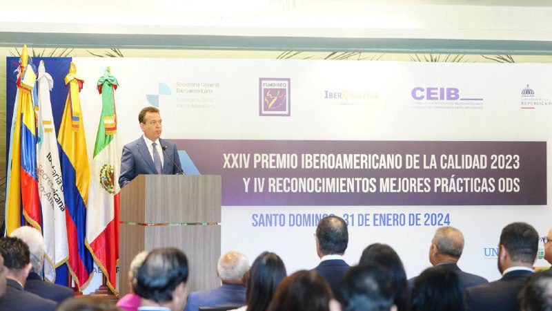 Santo Domingo, – El Ministerio de Industria, Comercio y Mipymes (MICM), obtuvo Medalla de Oro en el Reconocimiento a las Mejores Prácticas en Materia de Objetivos de Desarrollo Sostenible (ODS) 2023, un prestigioso galardón organizado por la Fundación Iberoamericana para la Gestión de la Calidad (FUNDIBEQ).