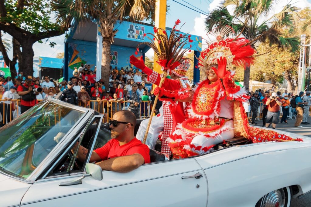 La realeza del carnaval, Carlos Manuel Tavarez Ventura y Belkis Amarilis Delgado, aportaron un toque de glamour al evento, siendo transportados por el Club de Carros Antiguos, mientras que personalidades como Michael Miguel Holguín y Aquiles Correa animaron a la multitud, destacando las características únicas de cada comparsa.