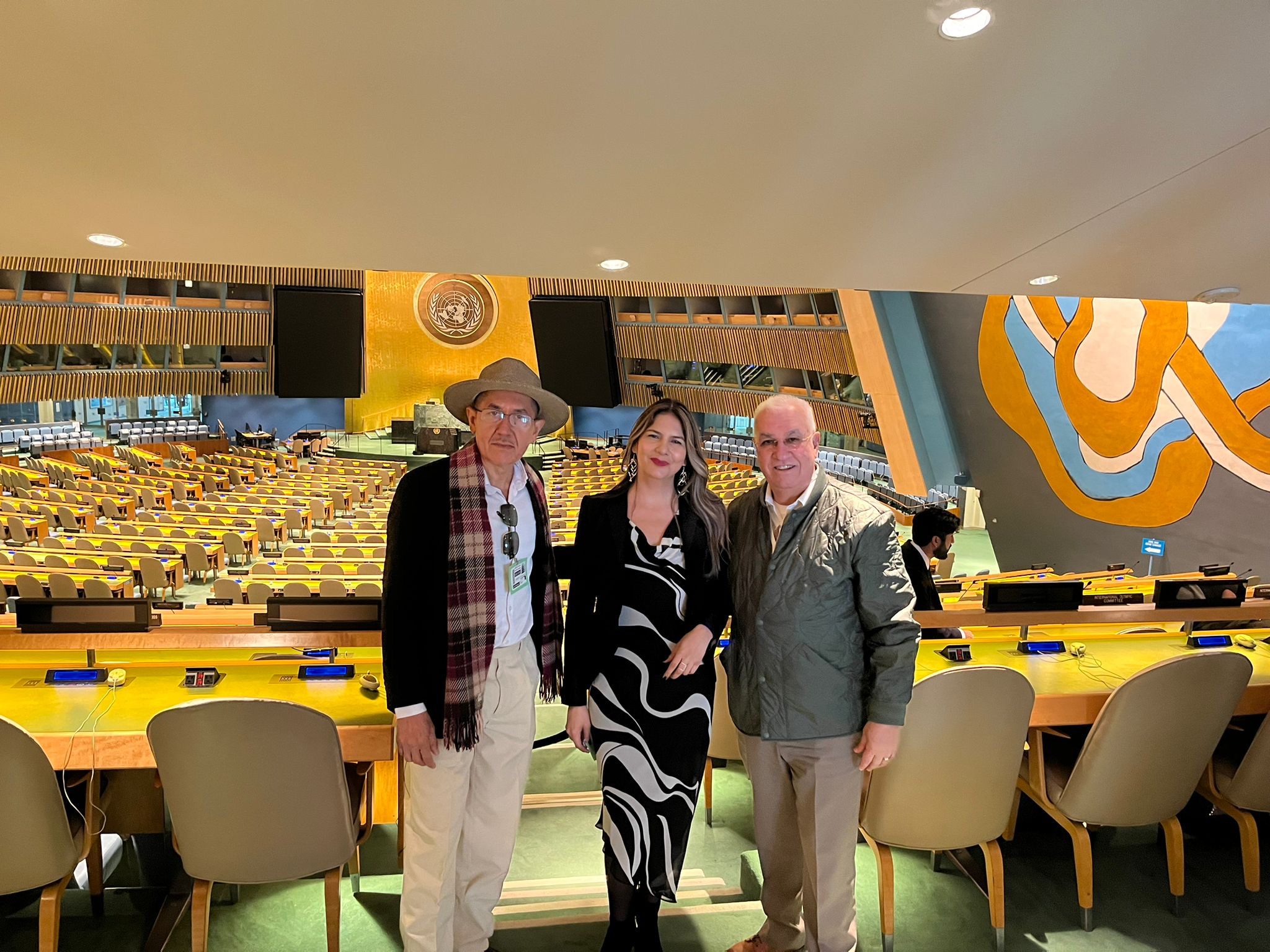 En las Naciones Unidas el maestro Ernesto Ríos Rocha disfrutó de un tour, gracias a la benevolencia del embajador Mario Báez, quien sirvió de edecán del maestro y la presidenta de COMAC, Lic. Eliana Pedroza, en este recorrido pudo apreciar los grandes murales que se encuentran en esta sede, donde convergen todos los países del mundo como miembros ONU. El embajador Báez es un gran conocedor del arte y la cultura.