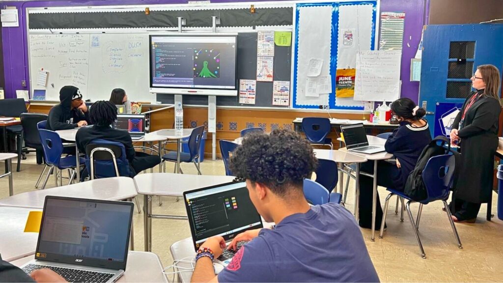 Durante el año escolar 2023-2024, los estudiantes completaron el curso CS First, dominando conceptos básicos de ciencias de la computación mediante la creación de animaciones, juegos e historias interactivas utilizando Scratch. Además, participaron en el currículo de medios computacionales del NYSED, produciendo proyectos creativos como arte abstracto de álbumes.