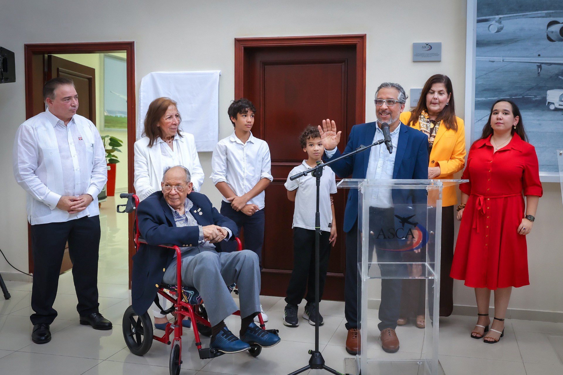 El evento tuvo como punto culminante la designación del aula magna de la Academia Superior de Ciencias Aeronáuticas (ASCA) con el nombre de Franklin Polanco, un reconocimiento que subraya su vasta trayectoria y contribuciones al desarrollo de la aviación civil en la nación.