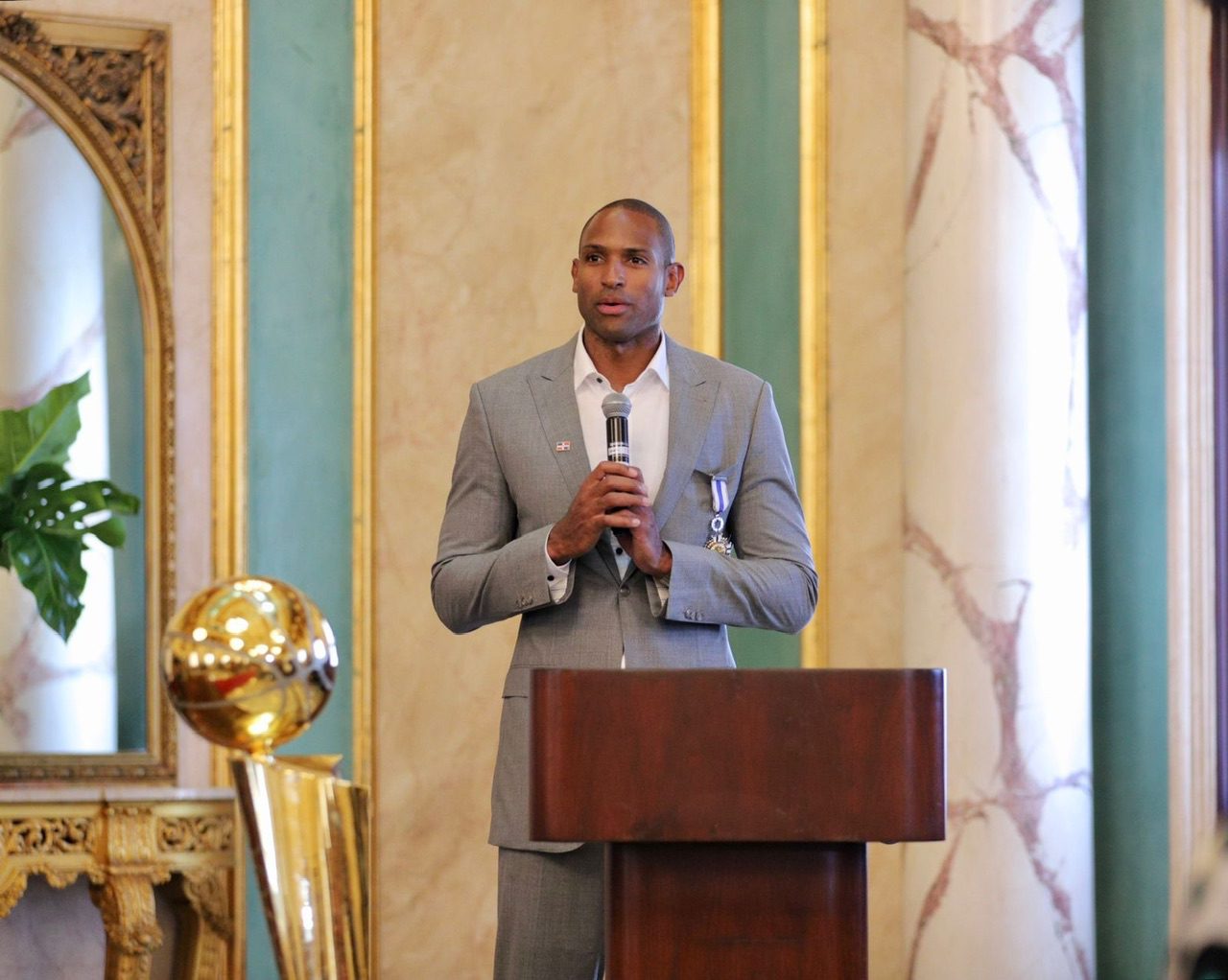 El consultor jurídico del Poder Ejecutivo, Antoliano Peralta, fue el encargado de leer el decreto presidencial que destaca la sobresaliente carrera de Horford. A lo largo de 17 años consecutivos en la NBA, Horford ha sido un referente en el baloncesto, siendo seleccionado en cinco ocasiones al Juego de Estrellas y formando parte de los mejores quintetos en 2011 y 2018.