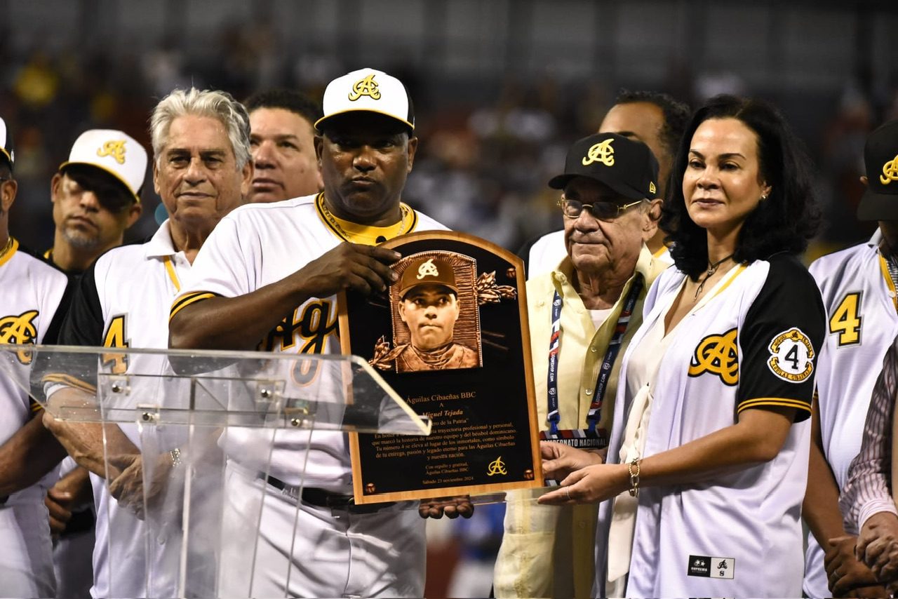 SANTIAGO, R.D. – Las Águilas Cibaeñas, una de las franquicias más emblemáticas del béisbol dominicano, escribieron otra página dorada en su historia al retirar el icónico número 4 de Miguel Tejada, un jugador cuya entrega y pasión dejaron una huella imborrable en la Liga Dominicana de Béisbol Profesional (LIDOM).