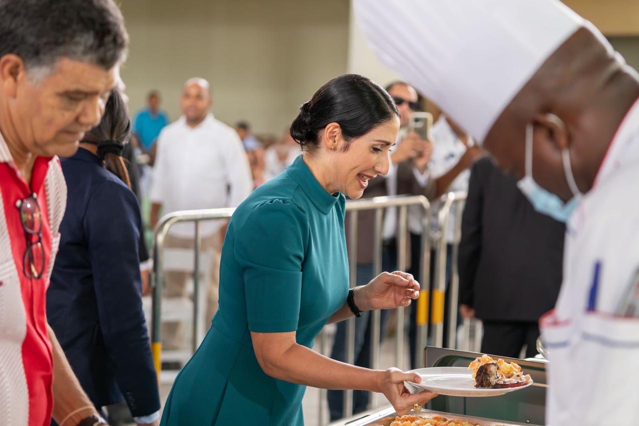 Santo Domingo Oeste. – La primera dama Raquel Arbaje compartió este viernes un cálido almuerzo navideño con unos 500 líderes de Iglesias, clubes y juntas de vecinos de Santo Domingo Oeste, como parte del programa gubernamental “La Navidad del Cambio Sigue”, impulsado por el presidente Luis Abinader. El evento, celebrado en el Club Deportivo de la Universidad Autónoma de Santo Domingo (UASD), tuvo como objetivo promover la solidaridad, la paz espiritual y la alegría característica de los dominicanos durante estas festividades.