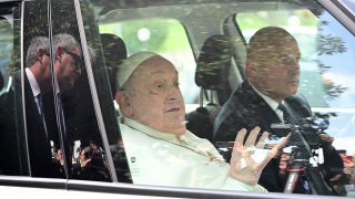 El Papa sale del Hospital Gemelli de Roma.