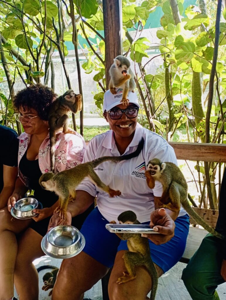 La primera parada fue en Monkey Land Pop, en la comunidad de Los Llabones, donde los periodistas fueron recibidos por el equipo de Runners Adventures Park. Guiados por instructores del centro, los visitantes conocieron de cerca a los famosos monos ardilla, que no tardaron en treparse en los hombros y manos de los asistentes en busca de frutas. También observaron monos capuchinos en un entorno cuidadosamente preservado.