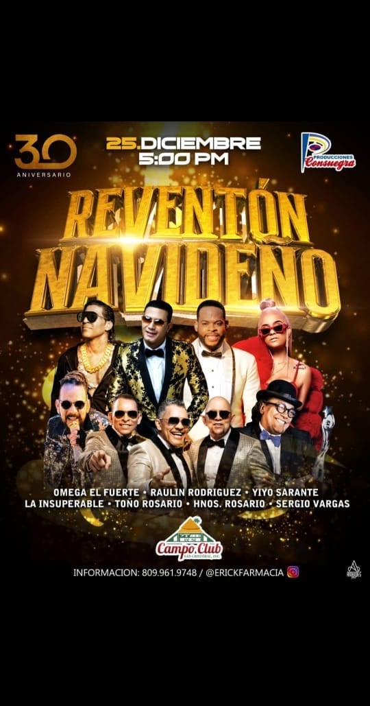 Con las actuaciones de Sergio Vargas, Toño Rosario, Los Hermanos Rosario, Omega, Yiyo Sarante, Raulín Rodríguez y La Insuperable Santo Domingo. El Reventón Navideño, la…