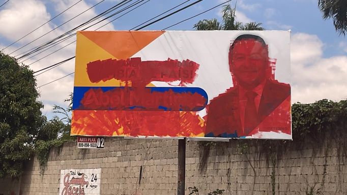 Dice que los carteles amanecieron embadurnadas con pintura roja, rotos y destrozados. Carteles y vallas de promoción del candidato a la Presidencia de la República…