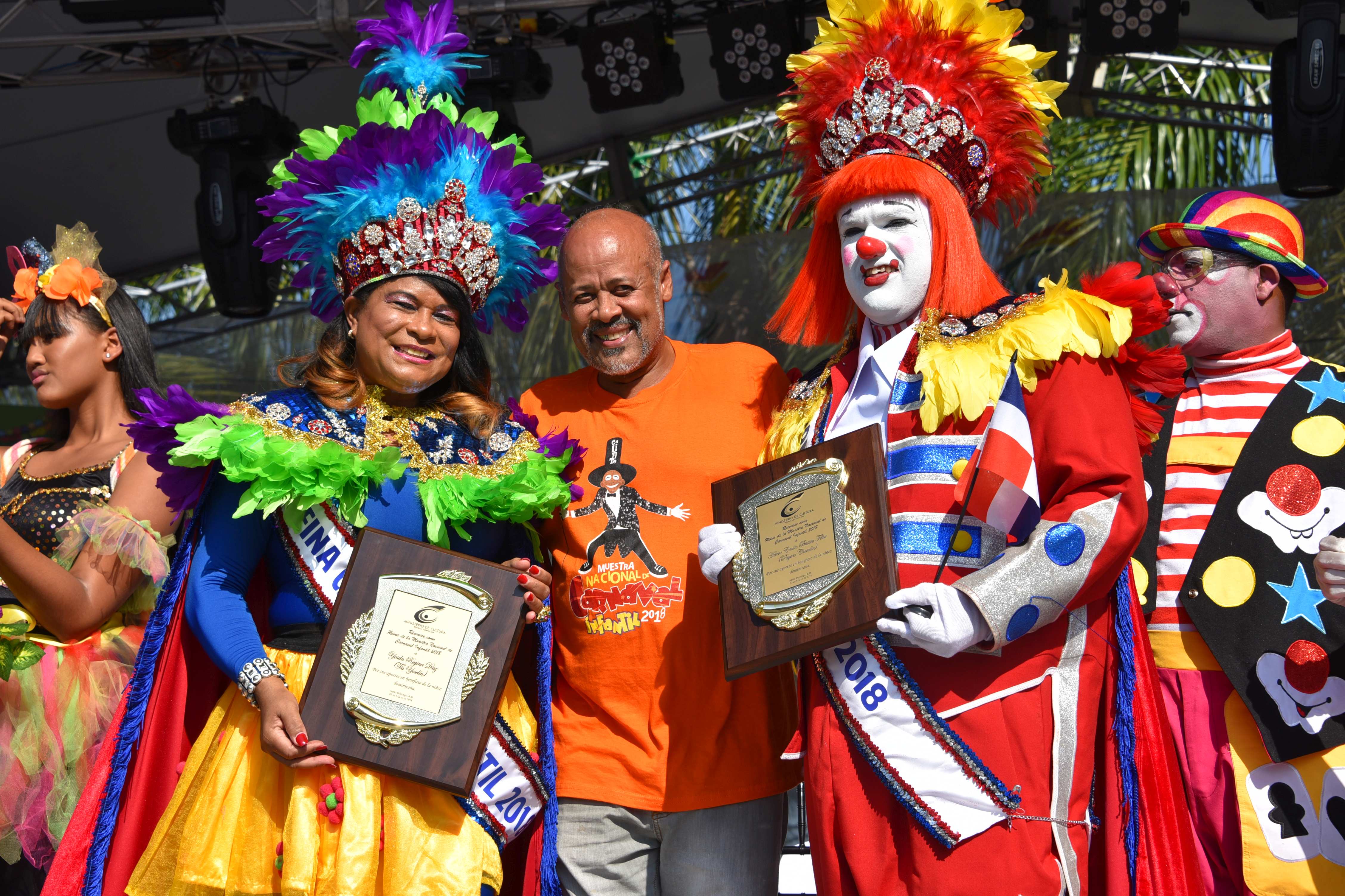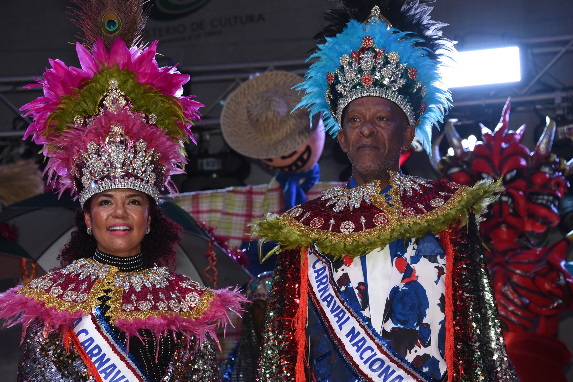 La actriz y comediante Cheddy García y el gestor cultural Juan Francisco Vásquez (Juampa) recibieron las coronas de las manos del ministro Pedro Vergés. Santo…