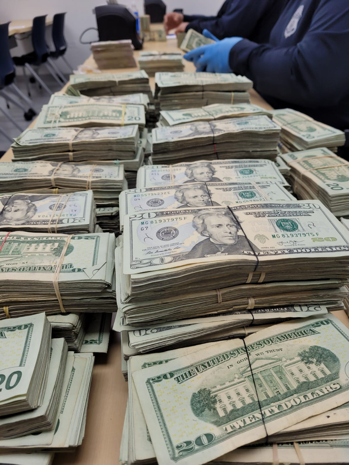 Como parte de la inspección de rutina un oficial canino de la Unidad K-9 detectó los billetes ocultos en mesas de maderas con destino a…