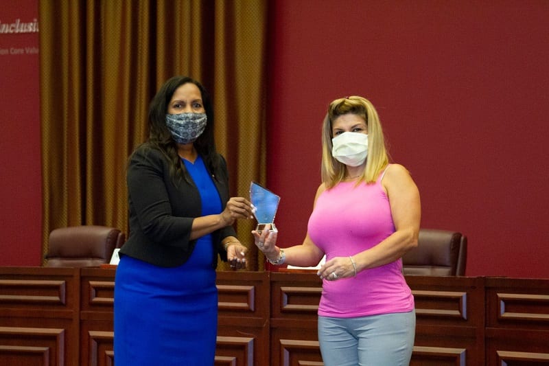 Miramar, Florida. —La comisionada de la Ciudad de Miramar, Ivette Colbourne, entregó el Premio de Excelencia por Servicios Comunitarios a la hispana, Frecia Hurtado, gerente…