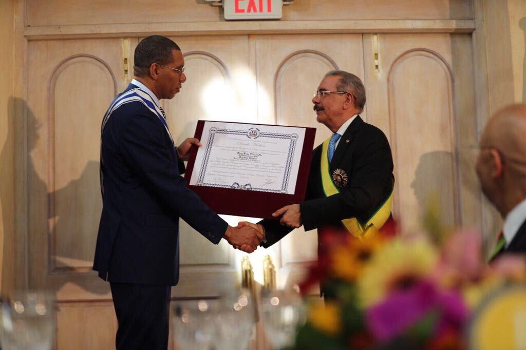 KINGSTON, Jamaica. -El presidente Danilo Medina y el primer ministro, Andrew Holness, fueron condecorados hoy. El Salón Banquete de The King 's House sirvió de…