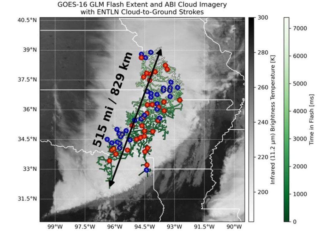 Récord mundial: un rayo recorrió 829 km en EE. UU. de punta a punta